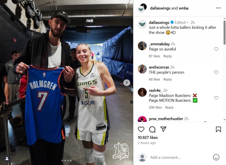 赛后,飞翼官方晒出了布克斯与太阳球员杰伦-格林以及雷霆球员切特-霍姆格伦的合影,并配文道:“不过是一群大佬在精彩表现后聚在一起罢了😮‍💨”